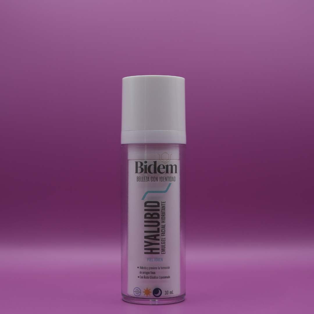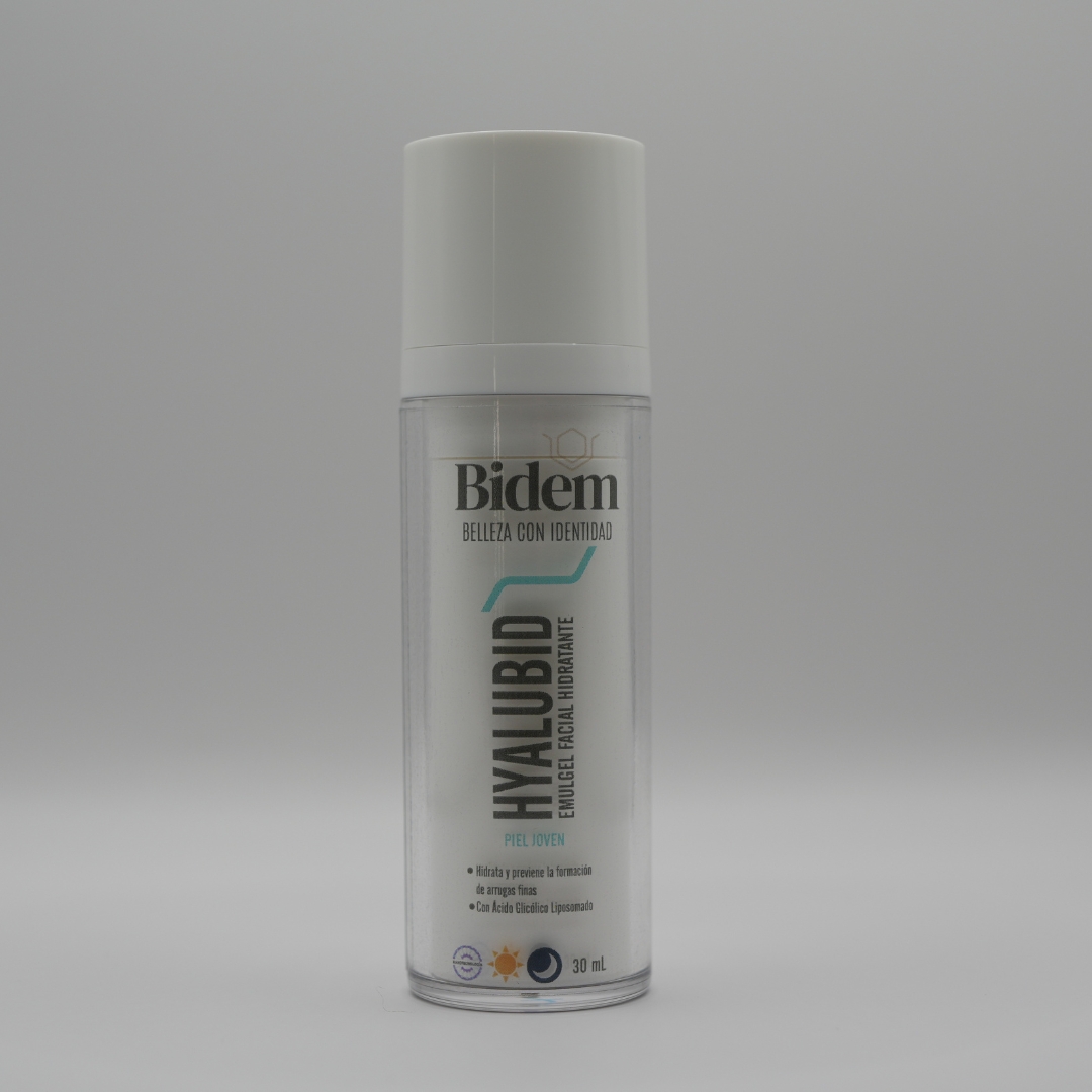 HYALUBID es un emulgel facial hidratante especialmente formulado para piel joven, que combina ácido hialurónico y ácido glicólico liposomado para aportar hidratación profunda y exfoliación suave, ayudando a mantener una piel fresca, luminosa y saludable.