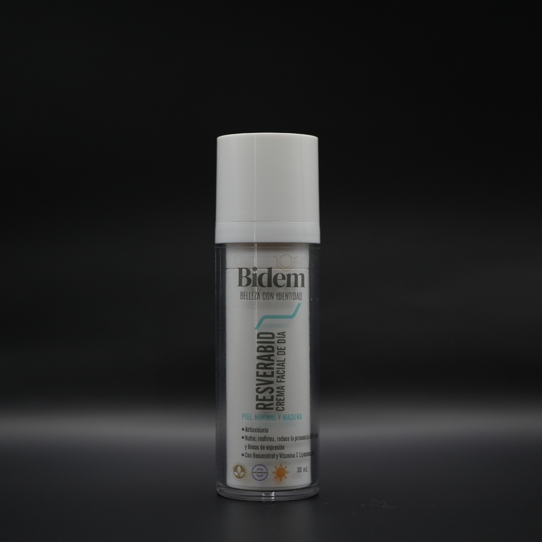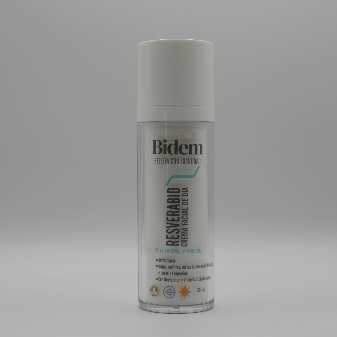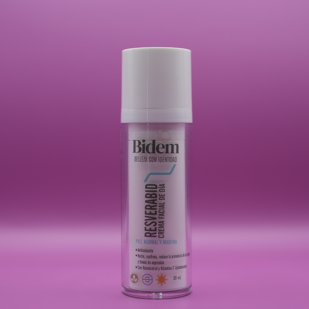 RESVERABID es una crema facial de día desarrollada específicamente para piel normal y madura, que combina resveratrol liposomado, ácido hialurónico y vitamina C liposomada. Esta fórmula avanzada ofrece una potente acción antioxidante, protección antiedad y una hidratación profunda, diseñada para mantener la firmeza y luminosidad natural de la piel.