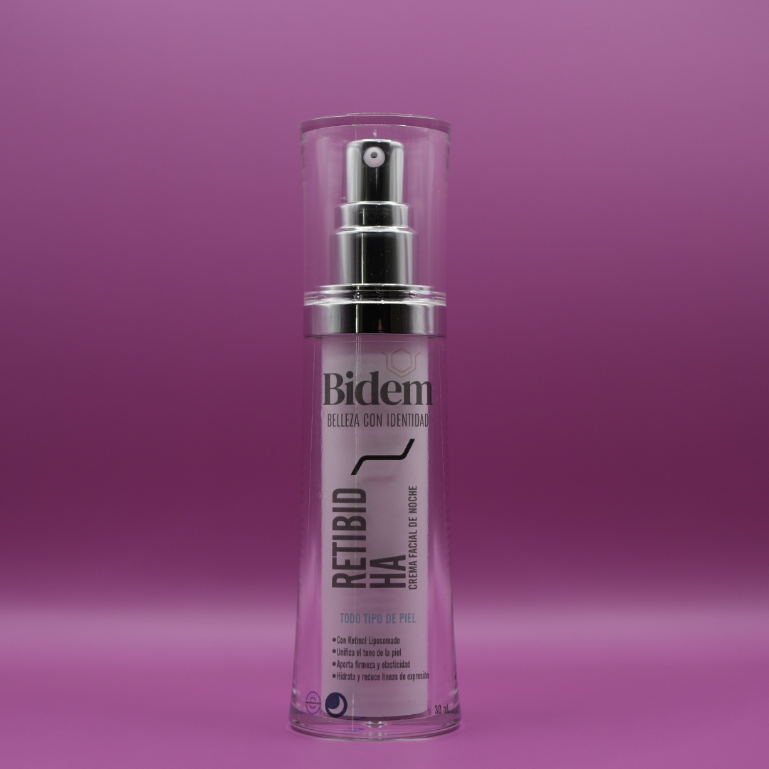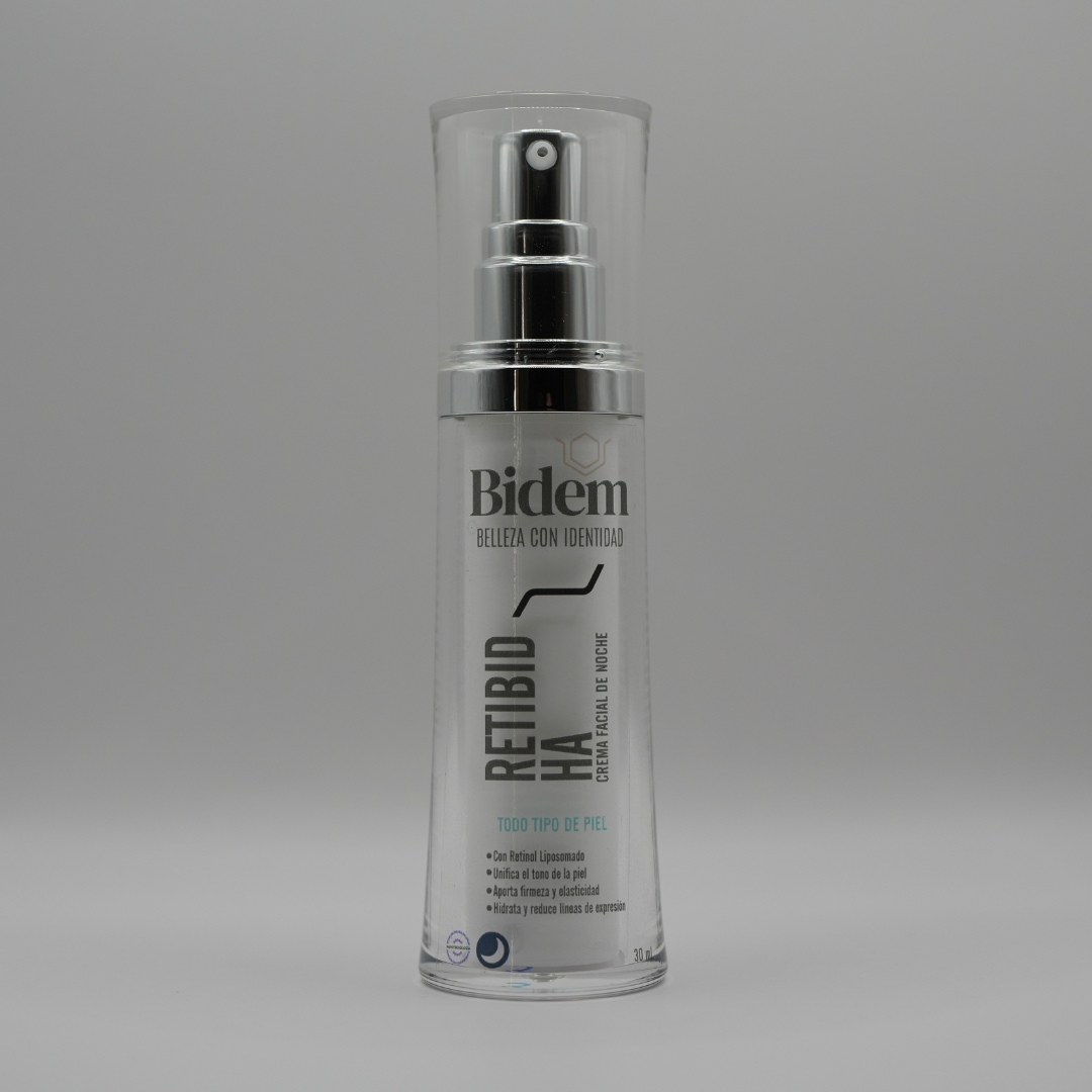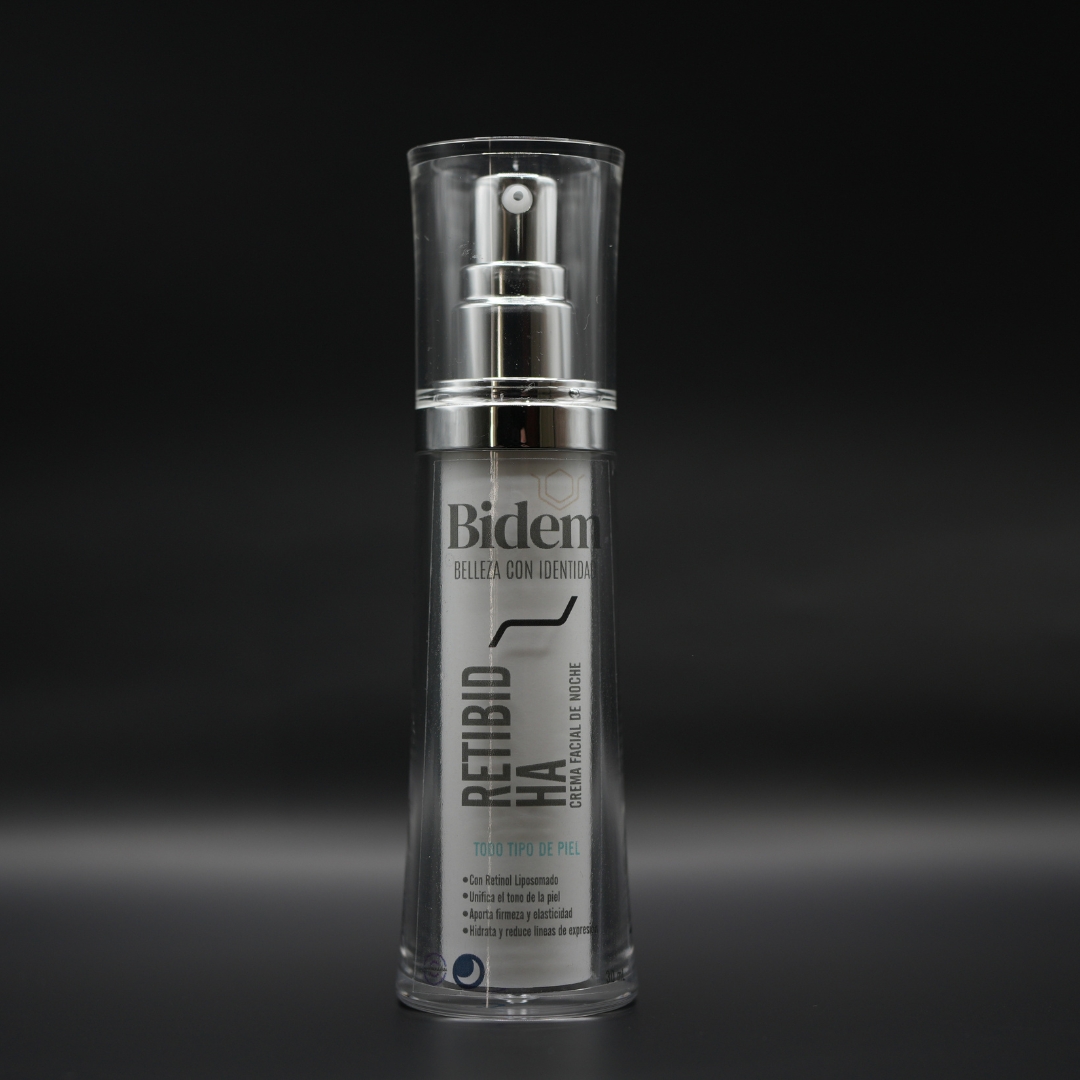 RETIBID HA es una crema facial de noche formulada con retinol liposomado y ácido hialurónico, diseñada para promover la renovación celular mientras hidrata profundamente la piel durante el descanso nocturno. Su fórmula avanzada favorece una piel más suave, firme y luminosa al despertar.